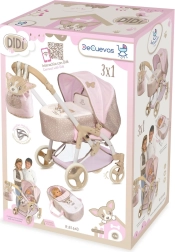 - Cochecito plegable para muñecas 3 en 1 (capazo/asiento deportivo/bolso de transporte)