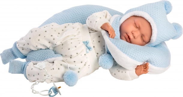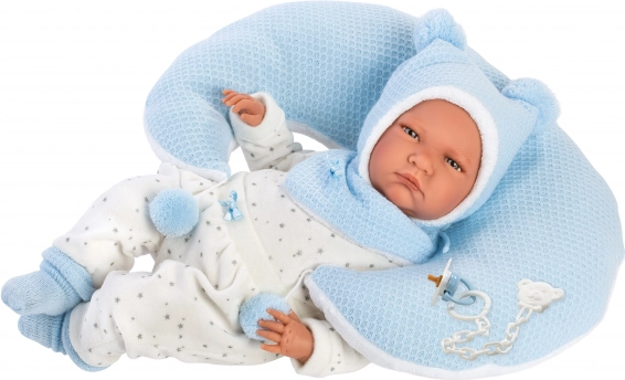 Este estiloso set de ropa para la muñeca NEW BORN LLORENS de 40–42 cm ofrece todo lo que los niños necesitan para el juego creativo y el cuidado del “bebé”. Los tejidos suaves en un agradable tono azul‑blanco y el acabado detallado garantizan un gran aspecto y un vestido cómodo. El práctico cojín de lactancia fomenta el juego realista y la motricidad fina.