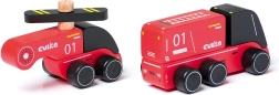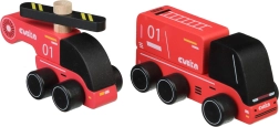 - Set de 2 piezas: camión de bomberos (12 cm) y helicóptero (10 cm)