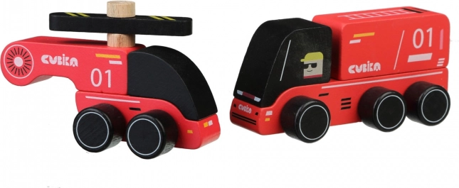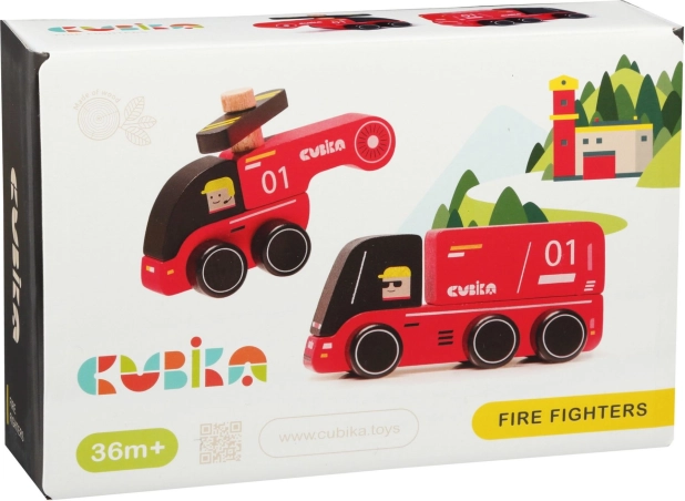 El set de madera CUBIKA bomberos incluye un camión de bomberos y un helicóptero de arce y haya de alta calidad. Gracias a sus bordes redondeados y a las pinturas al agua seguras, es ideal para niños a partir de 3 años. Las certificaciones TÜV y la norma europea EN 71 garantizan una alta seguridad. Fabricado en Europa. Longitud del coche 12 cm, del helicóptero 10 cm.