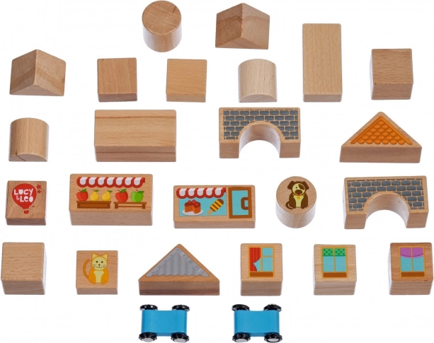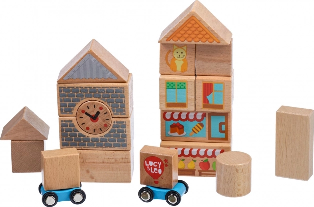 Descubre la magia de la construcción creativa con el set de madera Lucy & Leo ciudad. El conjunto incluye 25 piezas de madera de alta calidad, entre ellas 2 cochecitos con ruedas, de diferentes formas y colores para construir casitas y calles. Los elementos ilustrados como ventanas, tejados y escaparates estimulan la imaginación y el juego temático. El juguete favorece la motricidad fina, el pensamiento lógico y la creatividad, y tras jugar puedes guardarlo fácilmente en un práctico cubo redondo con tapa y asa.