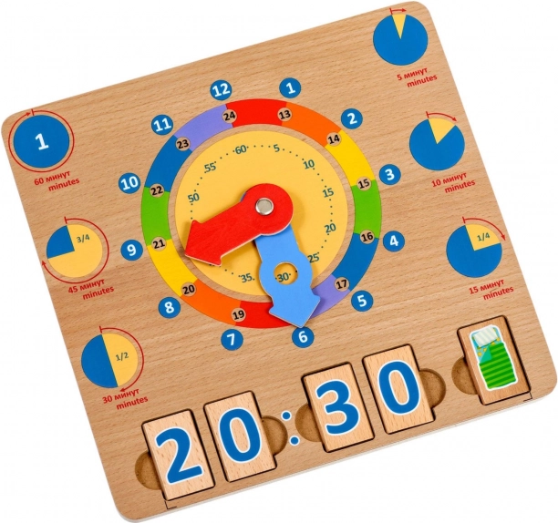 El tablero de juego de madera Aprendemos las horas es un excelente recurso didáctico que favorece el aprendizaje natural a través del juego. Las grandes manecillas de colores y los segmentos de tiempo claramente diferenciados permiten a los niños comprender con mayor facilidad las horas, los minutos y las actividades diarias en momentos concretos.