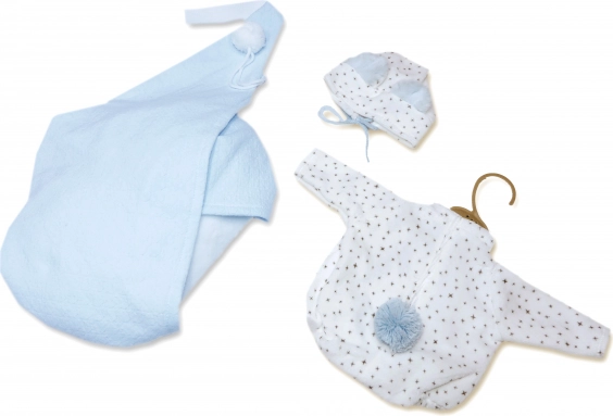 El conjunto está diseñado para muñecas de 35–36 cm y, gracias a la calidad de fabricación española, destaca por sus costuras precisas y delicados detalles, como pompones y patrones sutiles. Los materiales son agradables al tacto y fáciles de mantener para un juego siempre cómodo y sin preocupaciones.