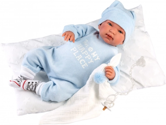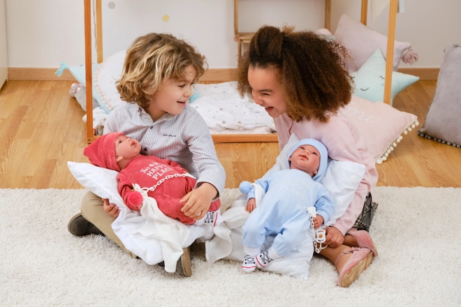 Adorable set de ropa para la muñeca NEW BORN de la marca Llorens en tamaño 43–44 cm, que encantará a cualquier pequeña cuidadora. Incluye conjunto de 3 piezas, un suave cojín/colchoneta y una mantita de apego con pompón. Fabricación española de calidad, materiales agradables y diseño seguro para niños a partir de 3 años.