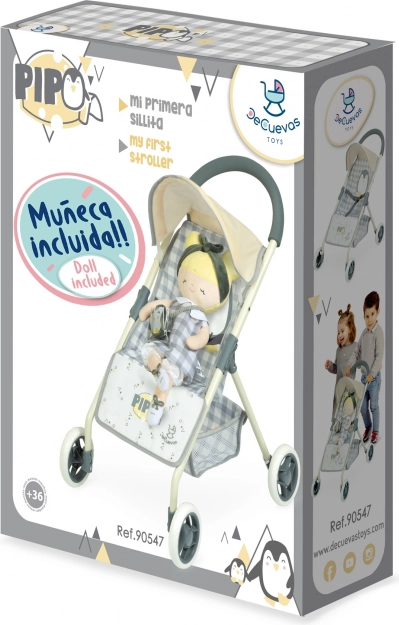 DeCuevas Cochecito deportivo para muñecas con muñeca de peluche PIPO 2022 forma parte de la nueva colección de 2022, que aporta accesorios de calidad y con estilo para las futuras amas de casa. Este cochecito se caracteriza por su elegante diseño español y su fabricación precisa. Es fácil de manejar, algo que apreciarás tanto durante el juego como al guardarlo.