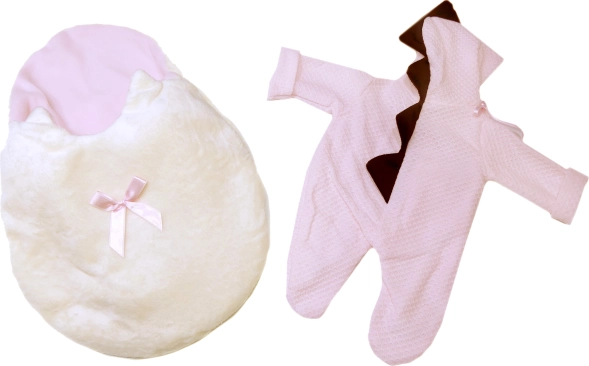 Ropita para muñeca con estilo de dinosaurio, ideal para niños a partir de 3 años. Diseñada para muñecas New Born de 43-44 cm, ofrece un entorno cálido y cómodo gracias al saco de forro polar.