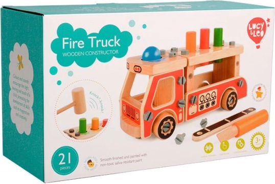 Construye tu propio camión de bomberos de madera y desarrolla habilidades con el set de construcción Montessori LUCY & LEO. Los niños disfrutarán martillando clavijas, atornillando y ensamblando 21 piezas, mientras entrenan la motricidad fina, la coordinación ojo–mano, el reconocimiento de colores y formas y la paciencia. Las pinturas no tóxicas y la resistente fabricación en madera garantizan diversión duradera.