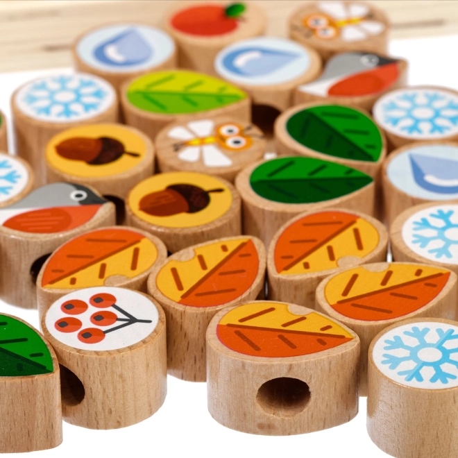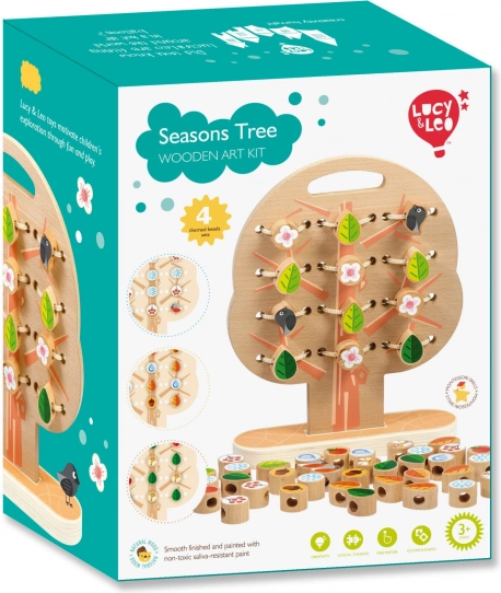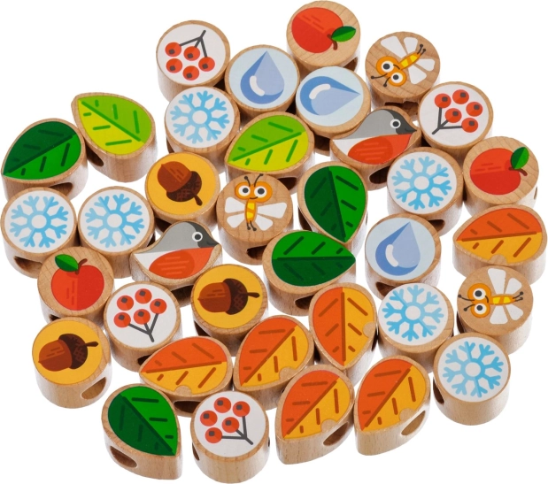 El juguete está inspirado en los principios Montessori: desarrolla el pensamiento lógico, la paciencia, la imaginación y fomenta el juego autónomo. Gracias al tema de las estaciones, los niños también practican el clasificado y la comprensión de relaciones.