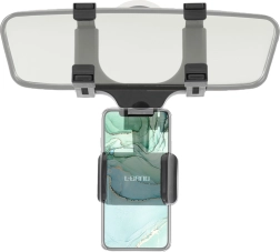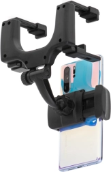 El soporte para teléfono está diseñado para fijarse fácilmente al retrovisor, lo que proporciona una estabilidad excelente sin riesgo de despegarse ni de dañar la rejilla de ventilación. Brazos ajustables que permiten adaptarse a distintos tipos de vehículos.