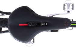 El sillín está diseñado teniendo en cuenta la aerodinámica y el bajo peso, lo que contribuye al rendimiento general y a la fácil maniobrabilidad de la bicicleta.