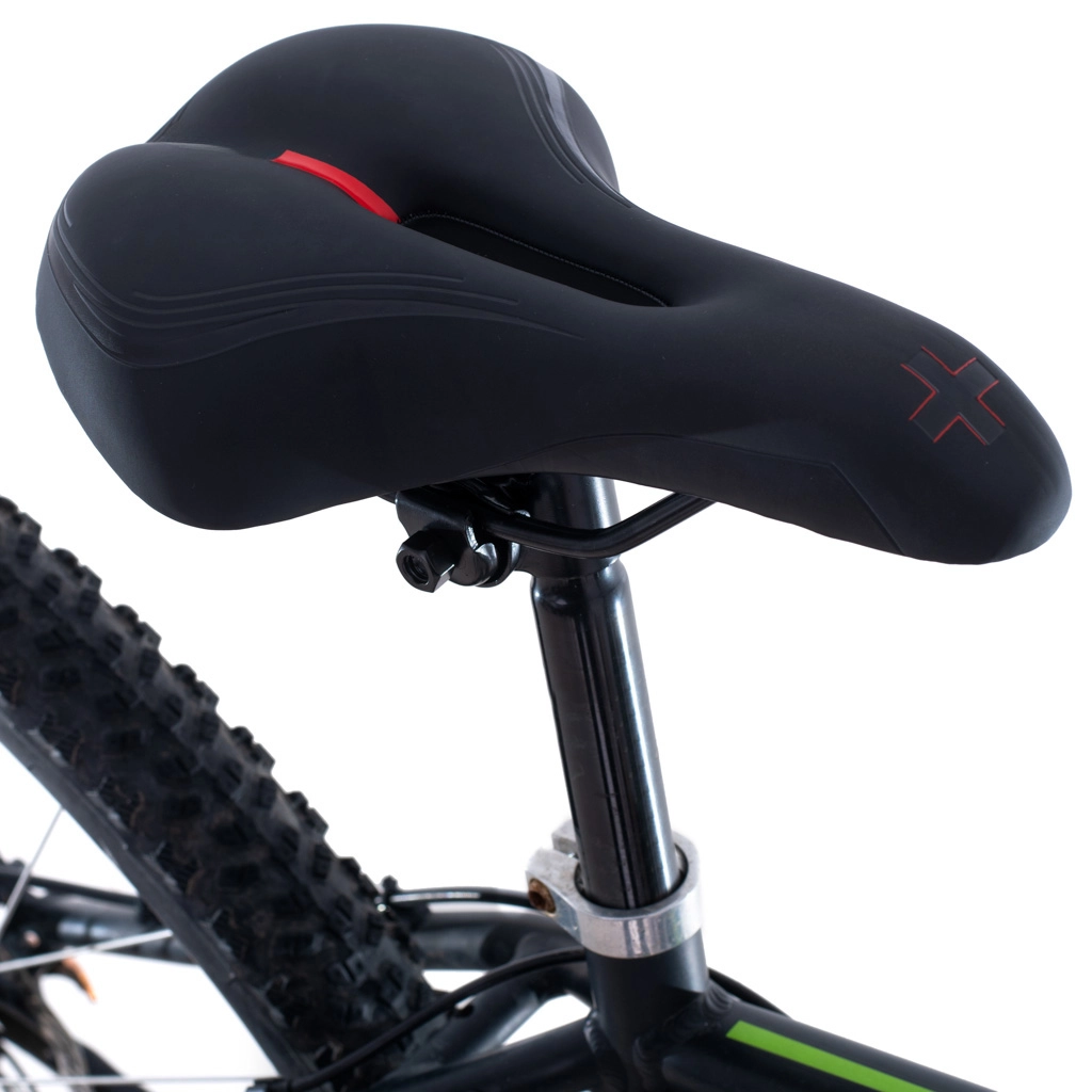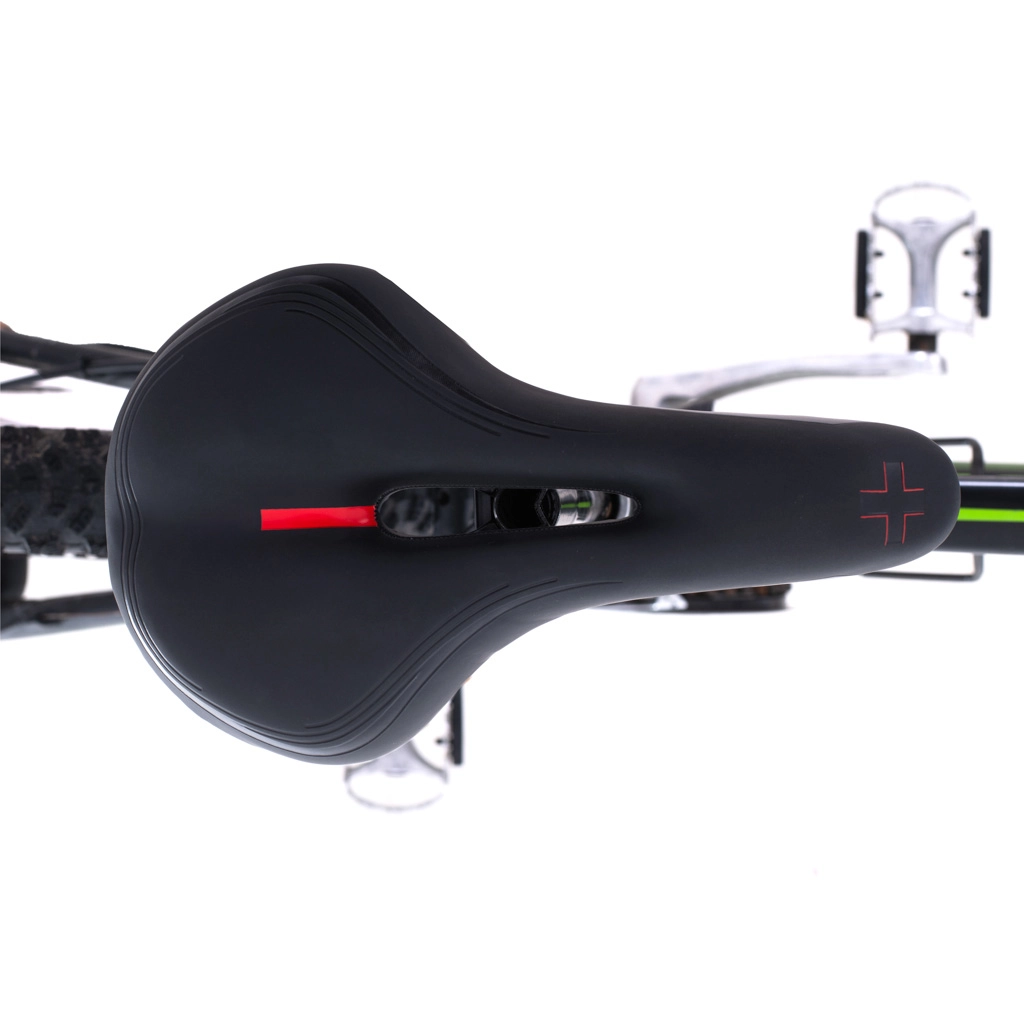 El sillín cuenta con un diseño ergonómico con canal central para aliviar la presión, lo que aumenta la comodidad durante la conducción.