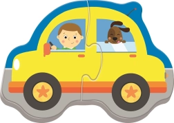 Cada rompecabezas representa un medio de transporte diferente —coche, tren, avión y barco— y fomenta el juego creativo.