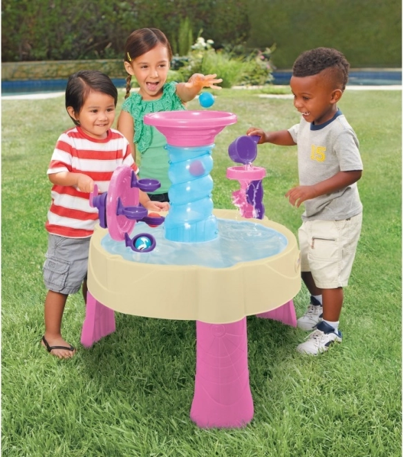 La mesa tiene una superficie de juego lo suficientemente amplia para varios niños y está fabricada en plástico resistente apto para uso exterior. Verter, recoger y soltar agua de forma sencilla fomenta el juego autónomo y la cooperación. Ideal para el jardín, la terraza y los días de verano junto a la piscina.