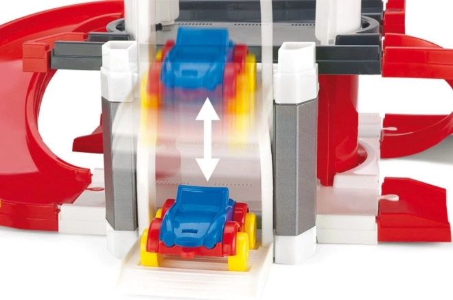 El set incluye un garaje de tres pisos con ascensor, un sistema de carreteras exteriores de 2,3 m de longitud, dos coches Kid Cars, pegatinas y decoraciones como señales, figuras de árboles y barandillas. La estructura colorida y ligera ofrece horas de diversión y el desarrollo de diversas habilidades infantiles.