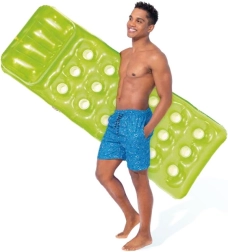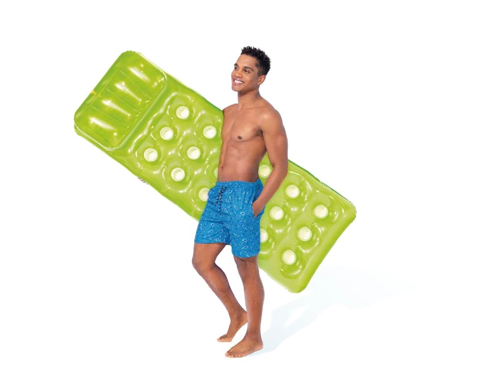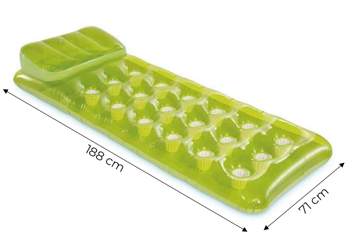 Disfruta del verano al máximo con la colchoneta inflable Intex de 188 × 71 cm en un fresco color verde. Gracias a la estable construcción COLI-BEAM, sus dos cámaras de aire y el resistente PVC, ofrece excelente estabilidad, descanso cómodo y larga durabilidad. Ideal para piscina, lago y mar, con una capacidad de carga de hasta 100 kg e incluye un parche de reparación en el paquete.