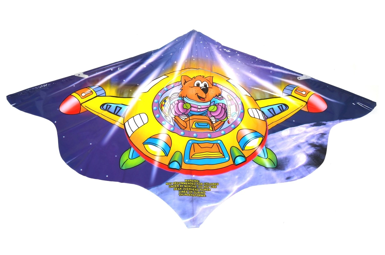 Esta colorida cometa voladora trae alegría a niños y adultos. Gracias a su estructura ligera y vuelo estable, es adecuada para principiantes y usuarios intermedios. Los divertidos motivos de animalitos en un transbordador espacial harán que destaque en el cielo.