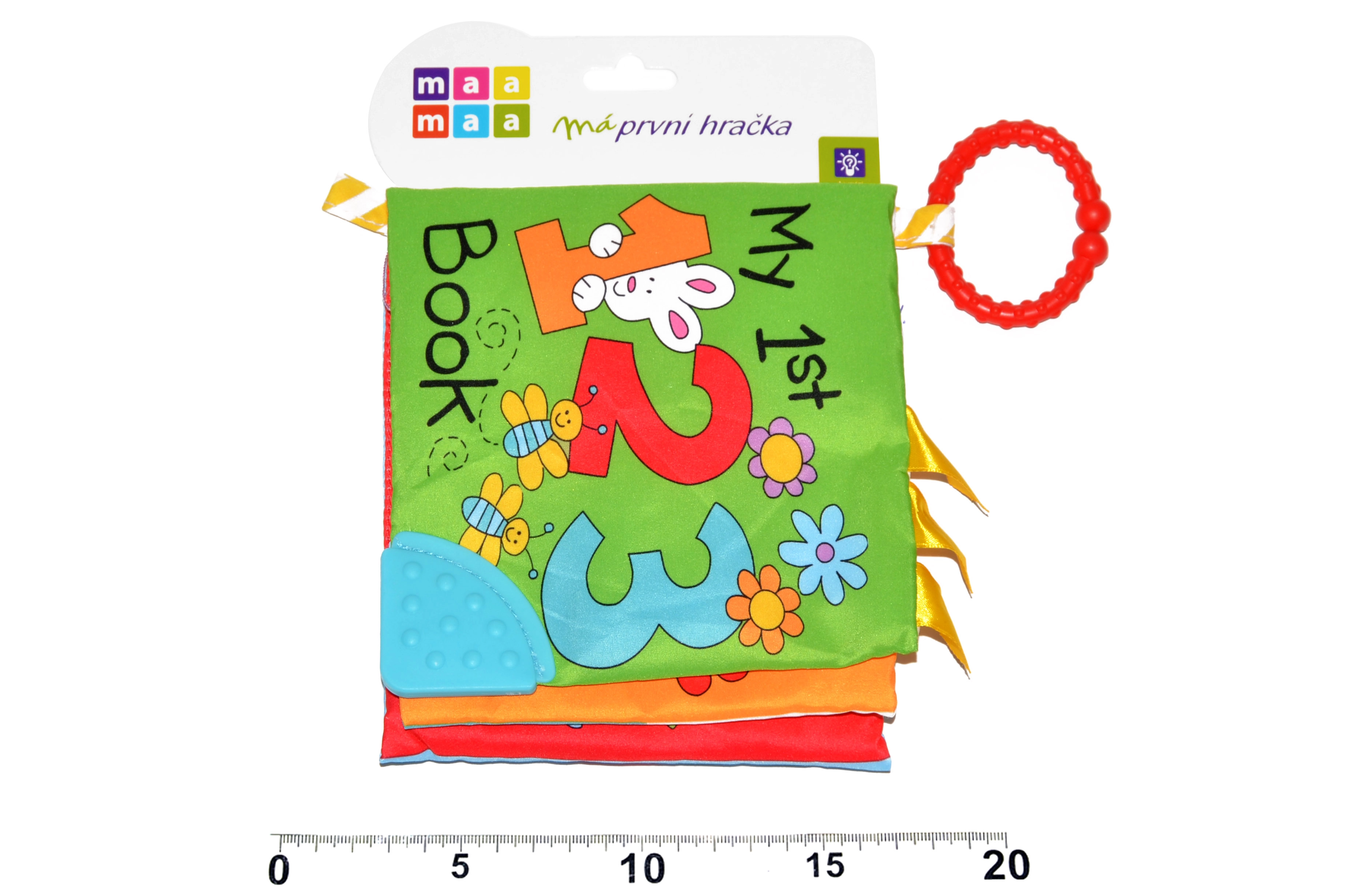 El práctico tamaño de 15 × 15 cm y su construcción ligera facilitan el agarre con pequeñas manitas. La estructura especial de la superficie invita a morder, masajea suavemente las encías y aporta alivio durante la erupción de los primeros dientes. Al mismo tiempo, el libro desarrolla la motricidad gruesa y favorece un correcto desarrollo psicomotor.