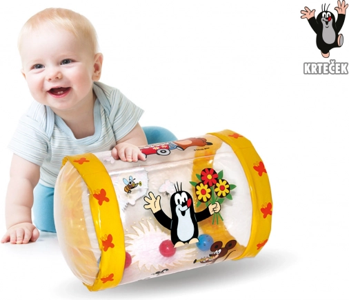 Divertido rollo inflable con el motivo del querido Topo (Krtek) que aporta a los niños desde 6 meses mucha alegría y descubrimiento. Imágenes coloridas y cascabeles de colores estimulan la imaginación, desarrollan la concentración y las habilidades motoras. Gracias a su forma, proporciona apoyo en los primeros intentos de ponerse de pie y fomenta la percepción y las primeras palabras.