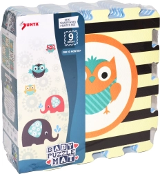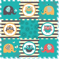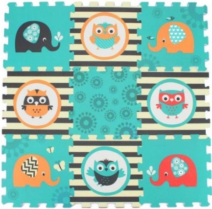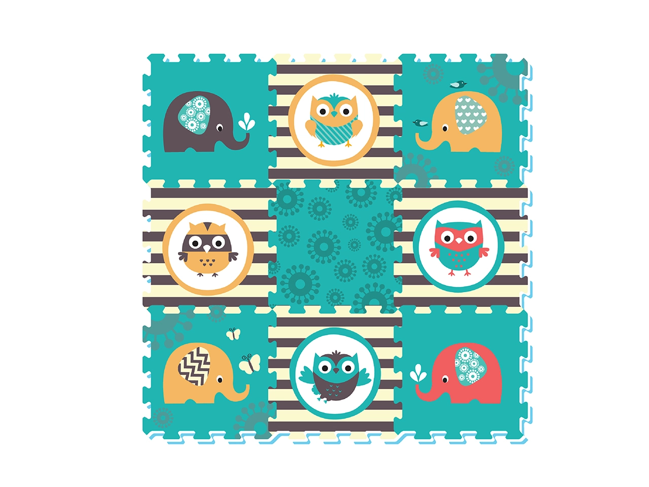 El rompecabezas de espuma con motivos de Búho y Elefante en colores vivos capta la atención de cualquier niño.