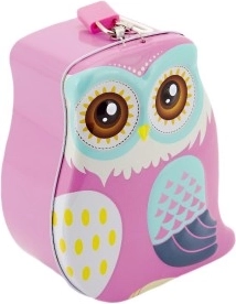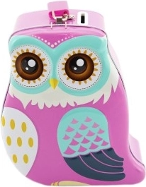 La hucha está disponible en dos colores atractivos: azul y rosa. Los divertidos búhos alegrarán cualquier habitación infantil y animarán a los niños a ahorrar con regularidad.