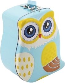 Esta hucha de lata con un adorable motivo de búho es una gran compañera para los primeros ahorros. Su construcción metálica resistente y el cierre con candado ayudan a los niños a guardar de forma segura monedas y billetes pequeños, mientras que su alegre aspecto motiva a ahorrar y, al mismo tiempo, sirve como una decoración con estilo para la habitación infantil.