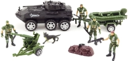 Este set militar ofrece todo lo que los niños necesitan para un juego aventurero de soldados. Las figuras detalladas con armas, complementadas con vehículo blindado, cañón, lancha y perro, estimulan la imaginación y permiten crear diversas situaciones de acción. Las piezas son de plástico resistente y algunos componentes se pueden montar fácilmente.