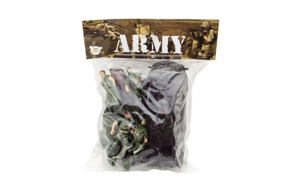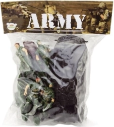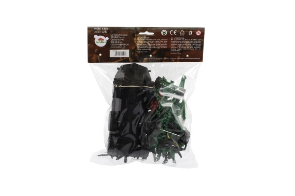 El set contiene figuras de soldados y accesorios guardados en una bolsa transparente con colgador de cartón, de modo que todas las piezas están organizadas y listas para jugar en cualquier momento y lugar.