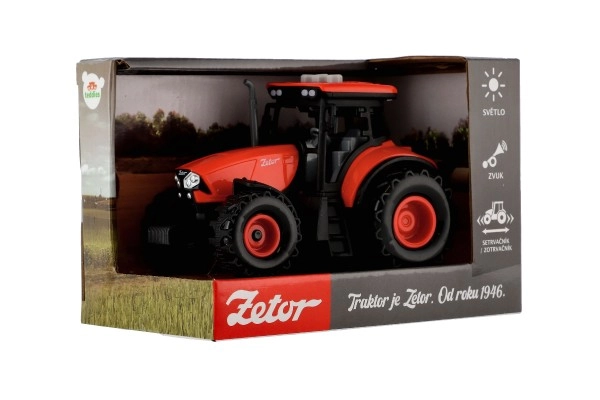 Realista tractor de plástico ZETOR para pequeños granjeros, con mecanismo de inercia para una marcha fluida, efectos de luz y sonidos de marcha atrás, claxon y arranque del motor. Su tamaño compacto de 14 cm encaja perfectamente en la mano de los niños y encantará a partir de los 3 años. Las pilas 3× AG13 están incluidas, así que la diversión puede empezar de inmediato.