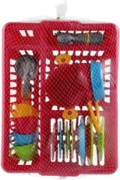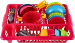 Alegre juego de cocina infantil en un práctico escurreplatos que ofrece horas de diversión creativa. Incluye todo lo que necesitan los pequeños chefs: platos, tazas con platillos, cubiertos, olla con tapa y sartenes. Sus colores intensos atraen la atención y desarrollan la imaginación, la motricidad fina y los hábitos de orden: después de “cocinar”, la vajilla se coloca fácilmente en el escurreplatos, como hace mamá.