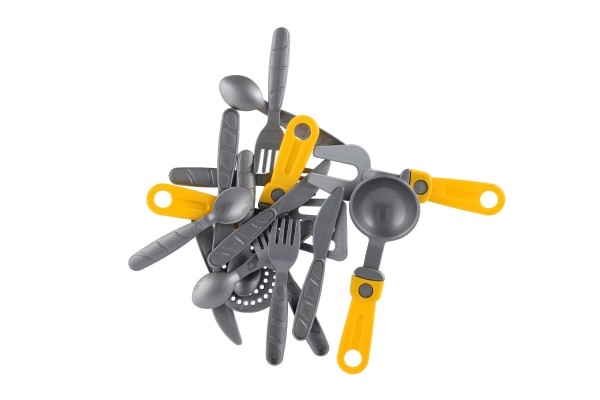 Juego completo de vajilla y utensilios para cocinar, servir e incluso organizar una merienda de té: los niños tienen a mano todo lo necesario.