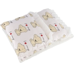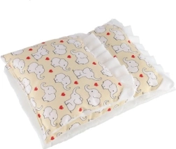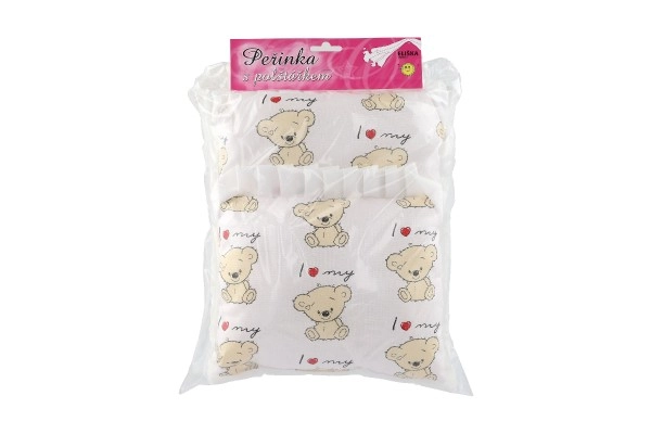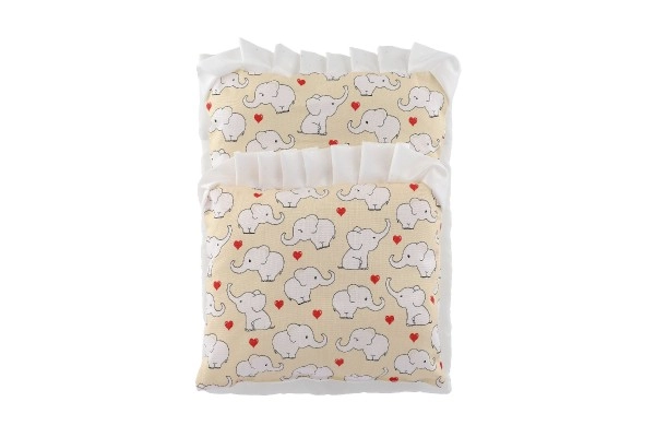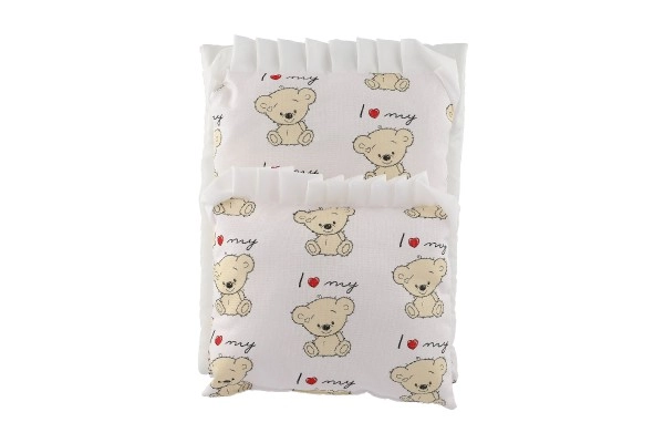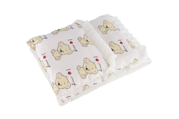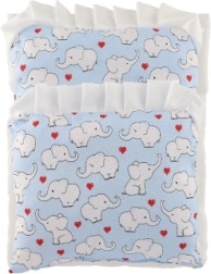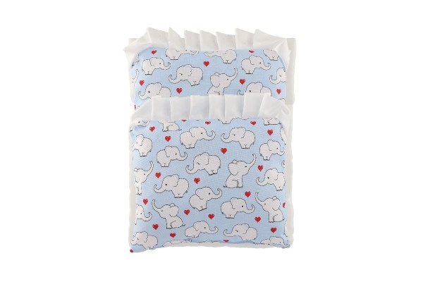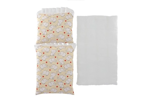 Almohadita 23 × 28 cm, base 50 × 30 cm, edredón 35 × 28 cm: encajan perfectamente en carritos y camitas para muñecas.