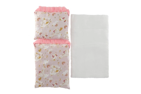 El práctico set para muñecas incluye todo lo necesario para un descanso cómodo: un edredón mullido, una almohadita esponjosa y una base. Gracias a los materiales suaves y a los motivos divertidos, queda perfecto en cualquier habitación infantil y favorece el desarrollo de la imaginación y el juego de roles.