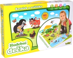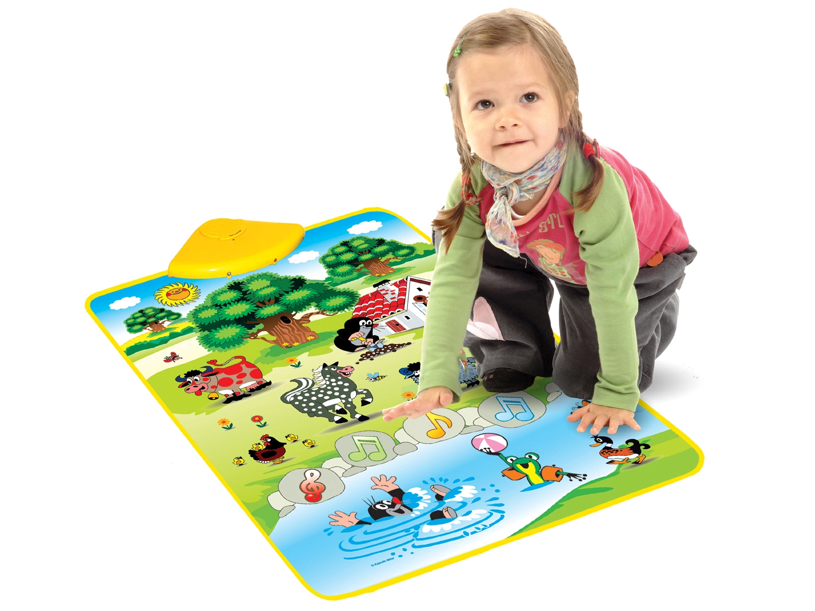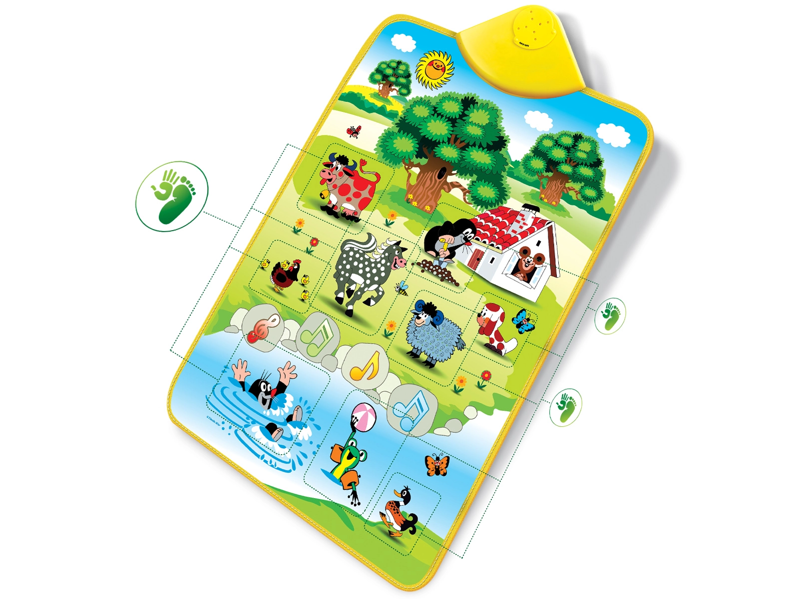 La manta musical del Topito es una herramienta ideal para el desarrollo de las habilidades auditivas de los niños. Con el Topito en el jardín, aprenderán a identificar sonidos como vaca, caballo, ranita y más. Todo está dispuesto en una manta suave que reacciona fácilmente al tacto: