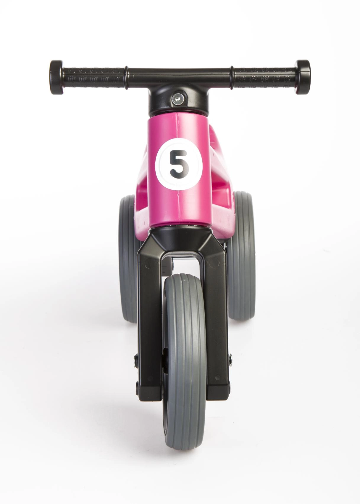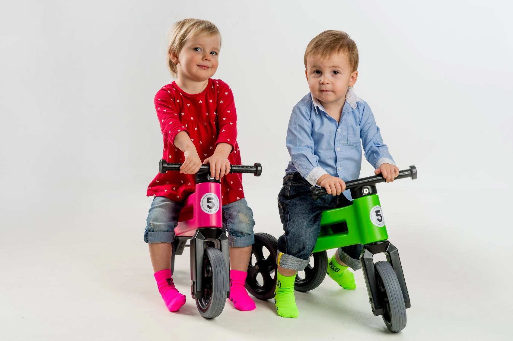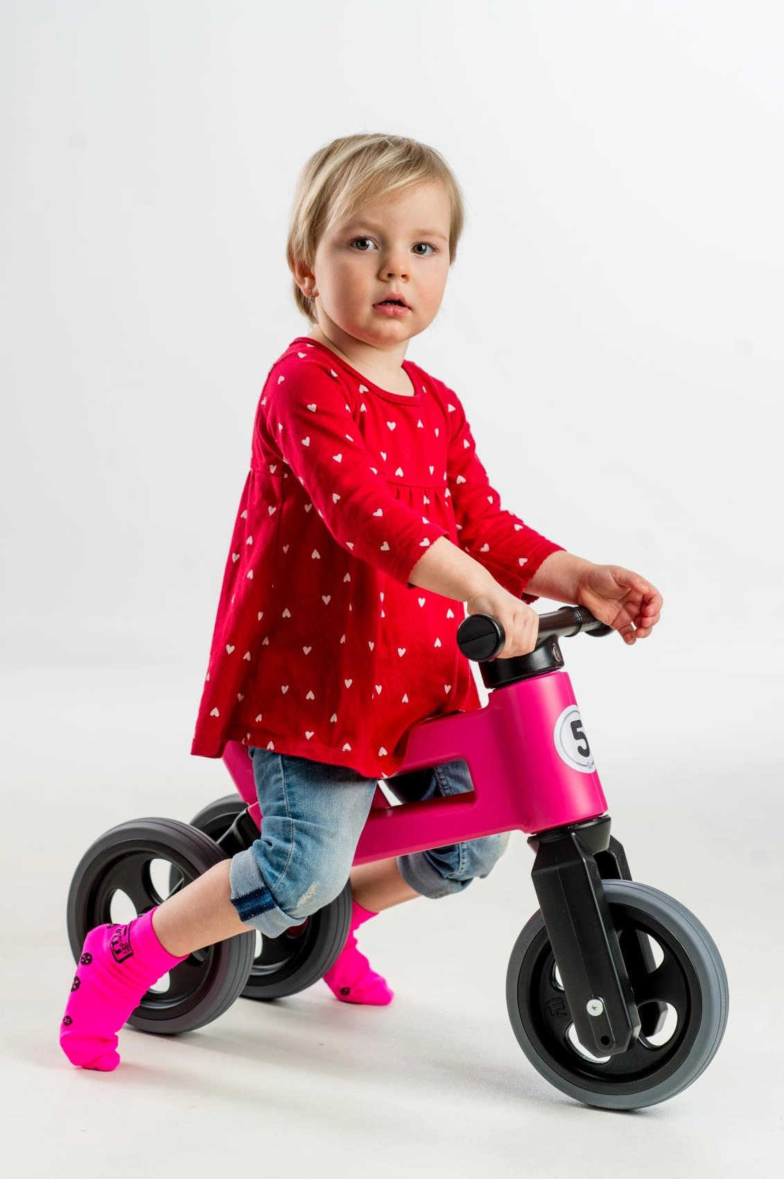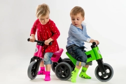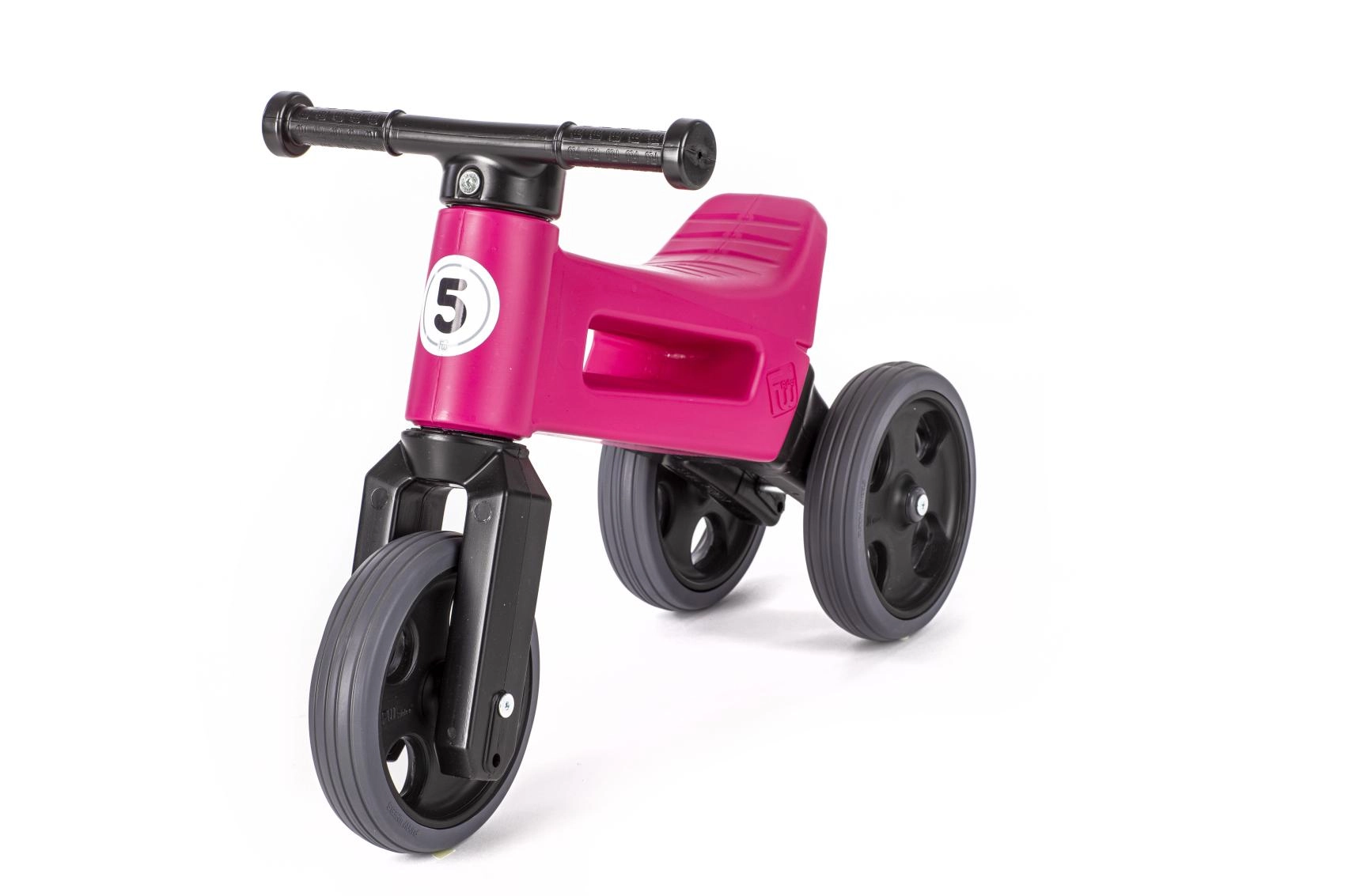 FUNNY WHEELS Rider Sport 2en1 es una bicicleta de equilibrio checa que se adapta a la edad y habilidades del niño. Empieza con la versión triciclo estable y luego pasa fácilmente a la de dos ruedas para entrenar el equilibrio. Está fabricada con plástico resistente y seguro para la salud y, gracias a sus neumáticos silenciosos, es apta para casa y para la acera exterior.