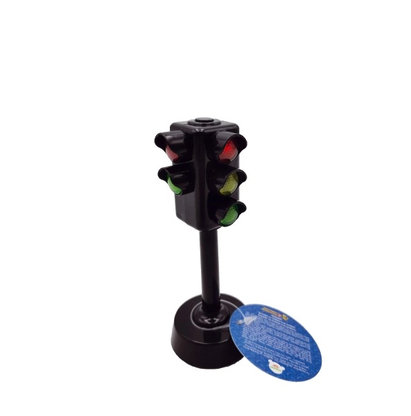 Este semáforo está diseñado para ofrecer diversión y aprendizaje al mismo tiempo. Está equipado con efectos de luz que simulan señales de tráfico reales y con efectos de sonido que aportan autenticidad al juego con cochecitos o trenes.