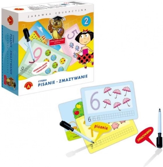 Divertido juego educativo para preescolares que ayuda a los niños a dominar las formas correctas de los números, su reconocimiento y las bases del cálculo. Gracias a las láminas reutilizables con rotulador borrable, los niños también entrenan la motricidad fina, la percepción y la concentración, todo de forma lúdica.