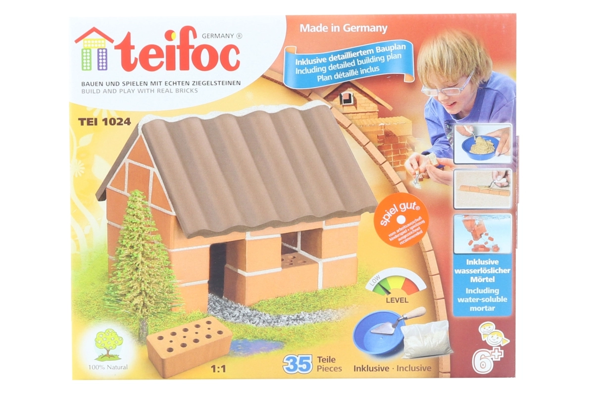 Construye tu propia miniatura de casa con auténticos ladrillitos cocidos. El set incluye un total de 35 piezas y todo lo necesario para la construcción: ladrillitos, mortero, vasito y cucharita. Diversión creativa ideal para niños a partir de 6 años, con dimensiones del modelo terminado de aprox. 18 × 15 × 8 cm.