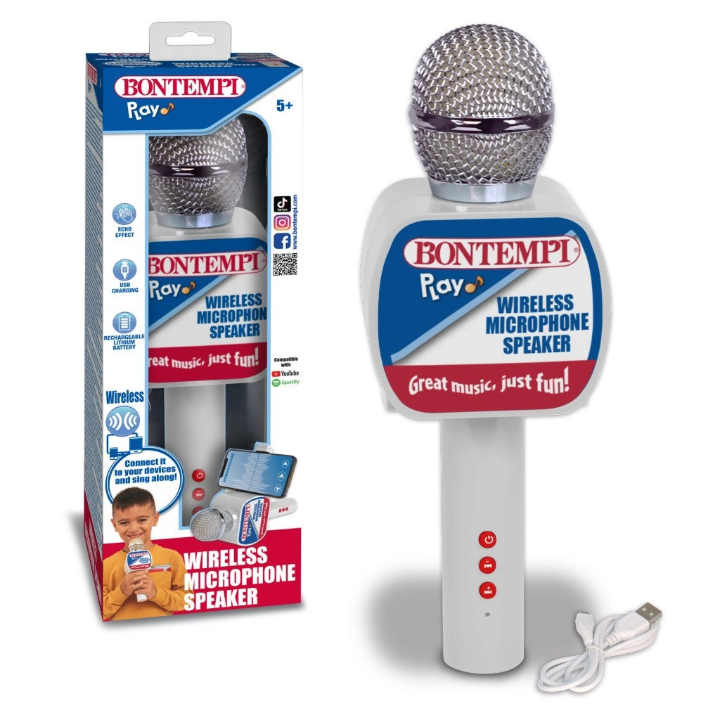Disfruta del karaoke en cualquier momento y lugar con este práctico micrófono inalámbrico. Gracias a su altavoz integrado, conexión inalámbrica y manejo sencillo, es ideal para cantar en casa, fiestas y celebraciones infantiles. El soporte para teléfono y el efecto de eco añaden aún más diversión.