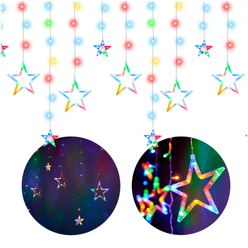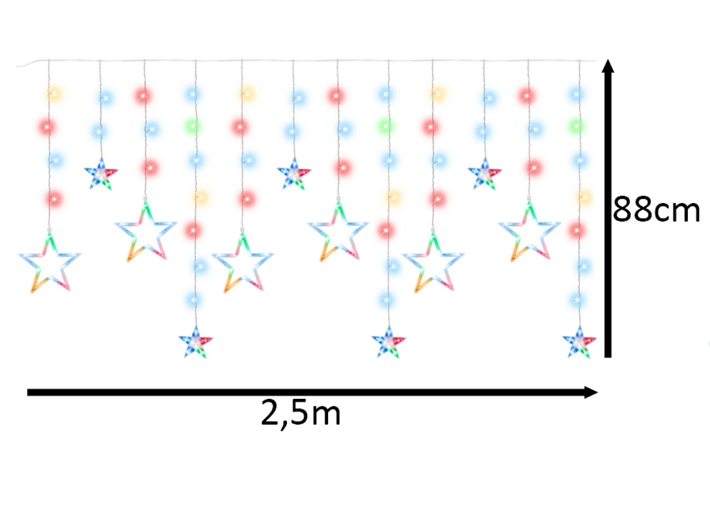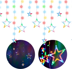 Aporta magia navideña a tu hogar con la cortina luminosa LED con estrellas de 2,5 m y 138 LED. Ofrece iluminación multicolor, 8 modos de luz y alimentación por red para un funcionamiento continuo sin pilas. Ideal como decoración festiva y luz ambiental acogedora durante todo el año.