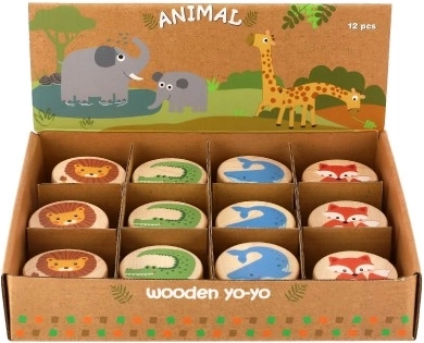 Cada yo‑yo está decorado con ilustraciones originales: ballena, zorro, cocodrilo y león. Los estampados coloridos convierten este clásico en un compañero atractivo para la diversión diaria.