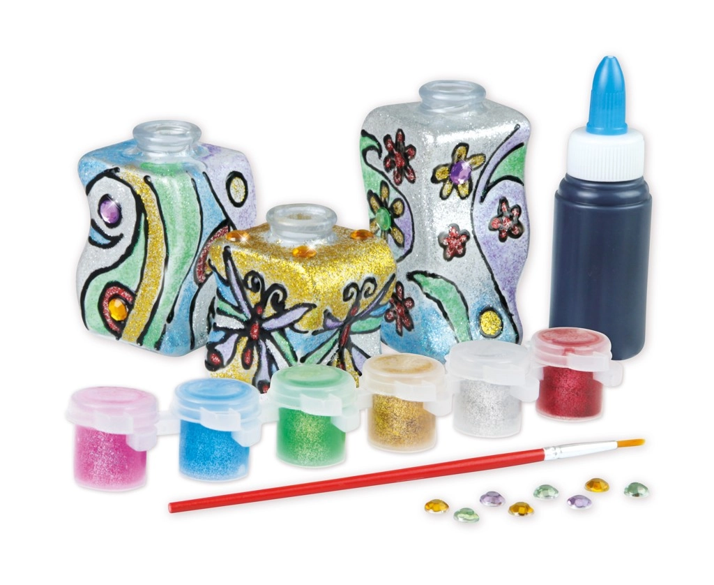 Descubre la diversión de crear con el set creativo para pintar sobre vidrio. El set incluye todo lo necesario para elaborar decoraciones originales: 3 jarrones, 6 pinturas brillantes, un pincel, piedras decorativas y masilla de modelar. Fomenta la creatividad, la motricidad fina y el desarrollo de la imaginación infantil.