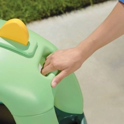 Para aún más diversión y comodidad, incluye volante con claxon, arranque con clic, tapa de depósito abatible y portabebidas detrás del asiento. Las ruedas delanteras giran 360°, lo que facilita los giros en casa y al aire libre. Los padres pueden guiar el vehículo fácilmente gracias al asa integrada en el techo. La fabricación mediante tecnología de rotomoldeo garantiza una larga vida útil y durabilidad.