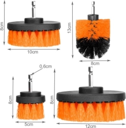 Juego universal de cepillos para taladro y atornillador a batería para una limpieza rápida y eficaz. Las cerdas de nailon de dureza media eliminan la suciedad en el baño y en el taller sin rayar la grifería. Gracias a las distintas formas y tamaños, elegirás fácilmente el cepillo adecuado para cada tarea. Sujeción universal, cerdas de nailon de dureza media, 4 piezas en el paquete, adecuado para azulejos, juntas, bañeras y llantas de coche.
