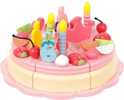 El pastel de madera permite decorarlo según las propias ideas utilizando elementos decorativos. Entrena la motricidad fina y desarrolla la creatividad. Todas las piezas están unidas de forma segura con imanes.