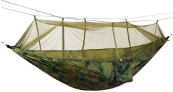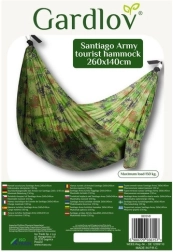 Nuestra hamaca turística Santiago Army es la compañera ideal para aventuras al aire libre. Ofrece excelente comodidad y protección contra insectos gracias a la mosquitera integrada. La instalación sencilla te permite colgar la hamaca rápida y fácilmente donde quieras descansar.