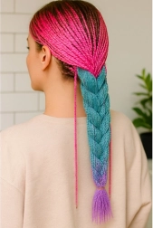 El efecto ombré en tendencia es una de las formas más populares de iluminar tu peinado sin cambios permanentes. Estos mechones sintéticos de colores añaden longitud, volumen y un estilo llamativo, sin riesgo y sin teñir tu propio cabello. Gracias a su fibra suave, se trenzan fácilmente en trenzas, box braids o como complemento de moños.