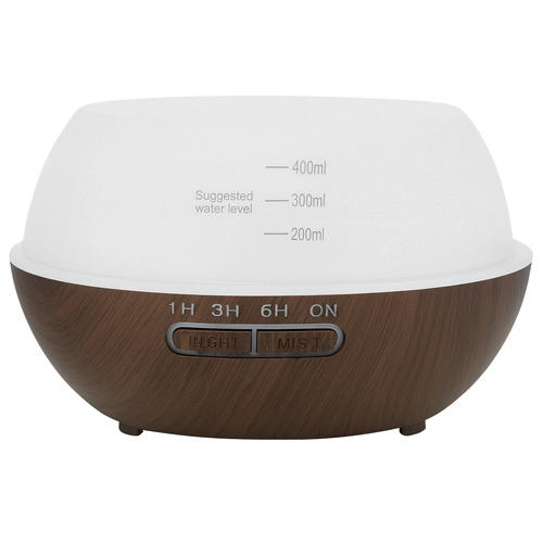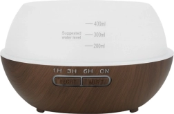 Transforma la atmósfera de tu hogar con el difusor de aroma y humidificador ultrasónico 4 en 1 con depósito de 400 ml. El dispositivo ofrece ionización para un aire más fresco, funcionamiento silencioso de alrededor de 36 dB, iluminación LED, temporizador 1/3/6 h y 4 modos de niebla. En el paquete encontrarás también un mando a distancia y 3 fragancias para aromaterapia.