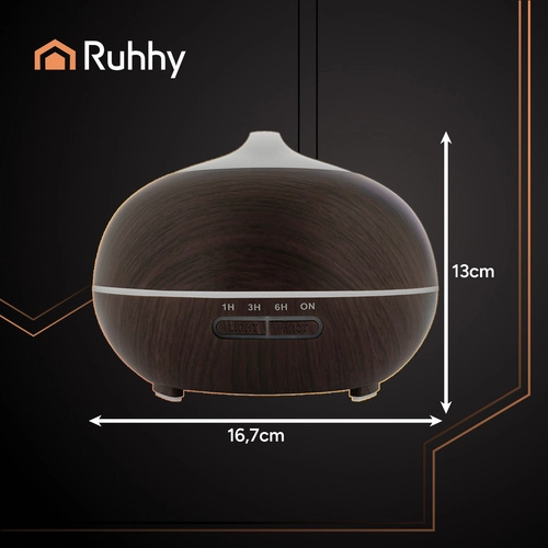 El práctico mando a distancia y el temporizador 1/3/6 h facilitan el uso diario. Elige entre 4 modos —niebla alta o baja, funcionamiento continuo o intermitente— y ajusta el ambiente con la iluminación LED. El paquete incluye 3 aceites solubles en agua con fragancias relajantes.