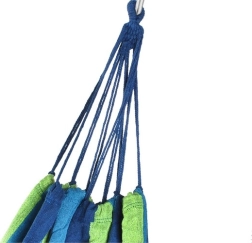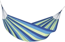 La cómoda hamaca sin barras ofrece un descanso estable y seguro para uno o dos usuarios. La mezcla de algodón y poliéster es agradable al tacto y a la vez resistente y fácil de mantener; el material se puede lavar en lavadora. Gracias a su estructura transpirable, la relajación es cómoda incluso en días calurosos.