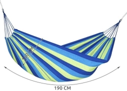 Gracias a su rápido plegado y dimensiones compactas, podrás llevar la hamaca a cualquier parte: al jardín, de camping, a la playa o de excursión al aire libre. Colgarla es cuestión de un momento: basta con atar los extremos con las cuerdas incluidas a puntos de anclaje estables (árboles, postes, ganchos). Su capacidad de 150 kg y los robustos colgantes de cuerda garantizan un uso seguro.